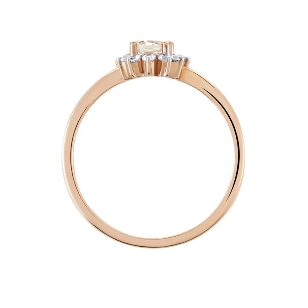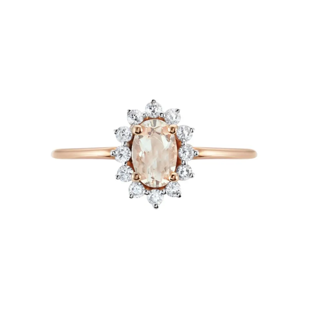 Bague Marguerite Entourée Or Rose 375/1000 Morganite Peche 0.44 Cts Serti Griffes