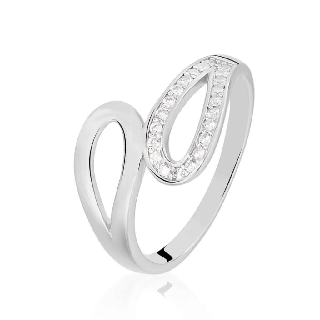 Bague Argent Blanc 925/1000 Entrelace Semi Pavage Oxydes De Zirconium