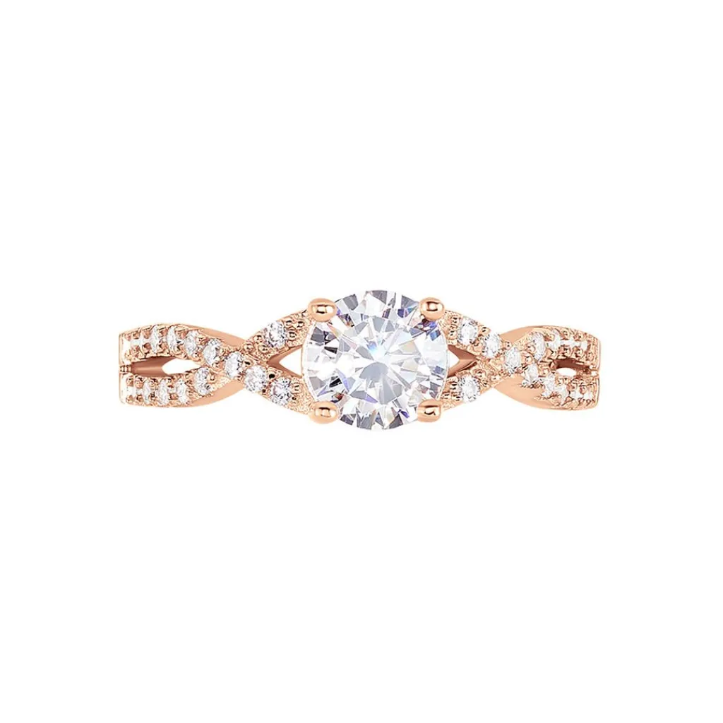 Bague Argent Rose 925/1000 Corps De Bague Ajouré Oxyde De Zirconium Central Serti Griffes