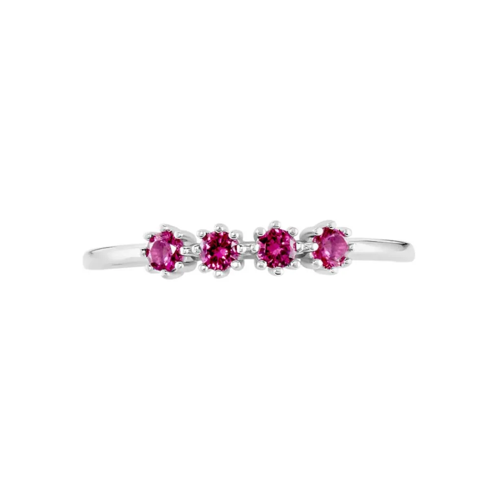 Bague Argent 925/1000 4 Oxydes De Zirconium Rouges Serti Griffes Effet Perlé