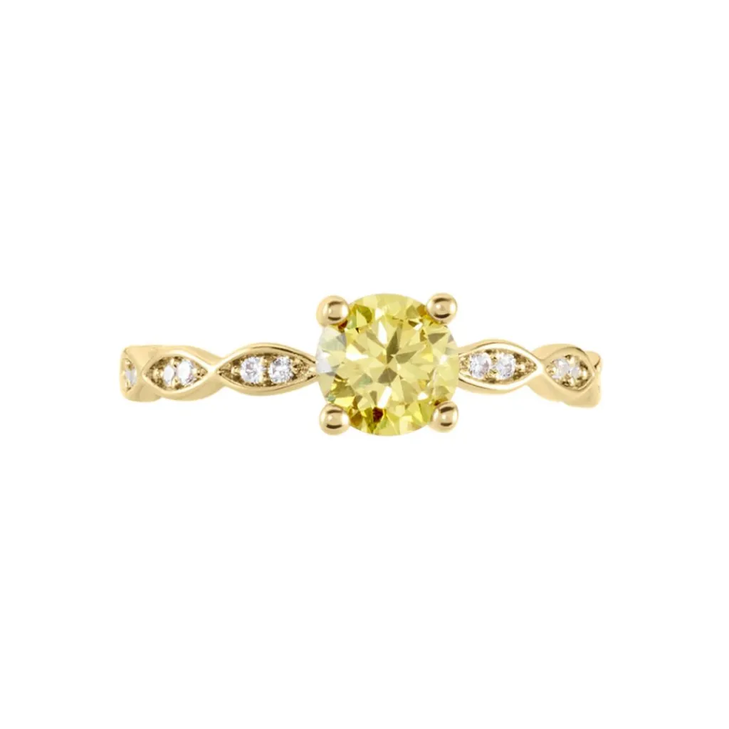 Bague Plaqué Or Jaune Solitaire Oxyde De Zirconium Jaune 4 Griffes Pavage Oxydes De Zirconium