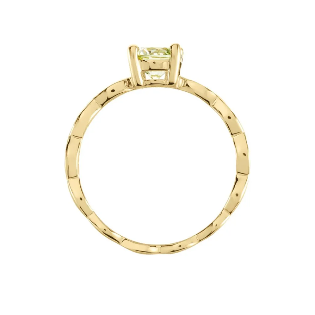 Bague Plaqué Or Jaune Solitaire Oxyde De Zirconium Vert 4 Griffes Pavage Oxydes De Zirconium