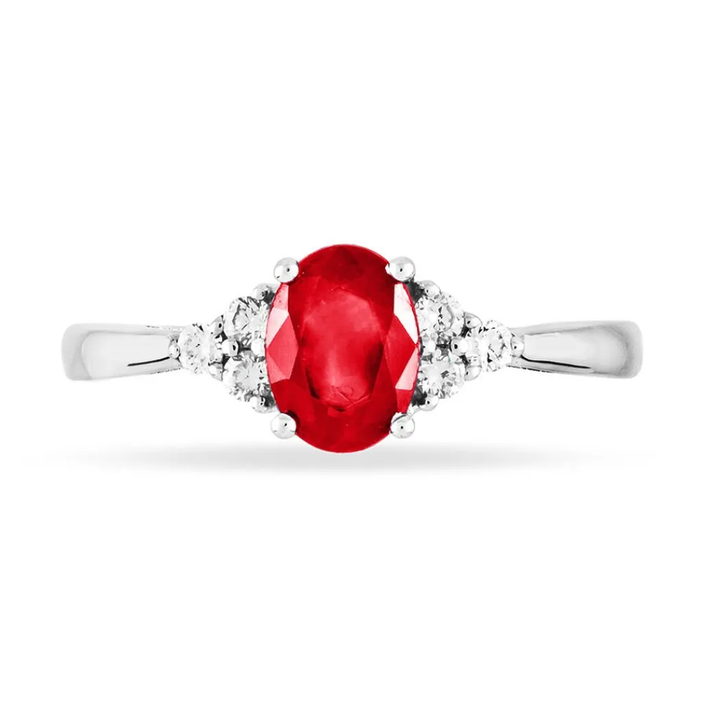 Bague Or Blanc 375/1000 Rubis Central Oval 4 Griffes 1.23cts Et Diamants