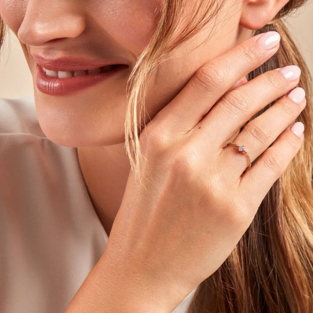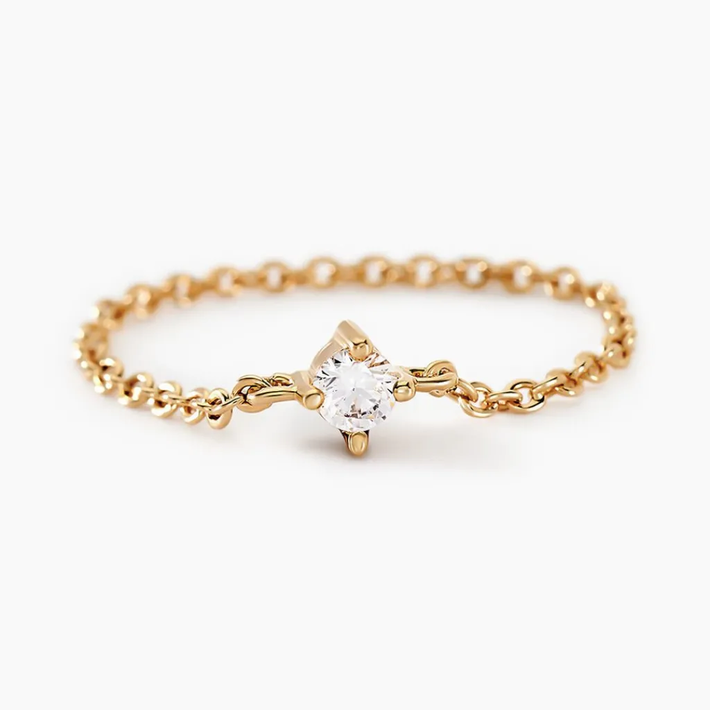 Bague Chaîne Plaqué Or Jaune Oxyde De Zirconium Serti Griffes Maille Forçat