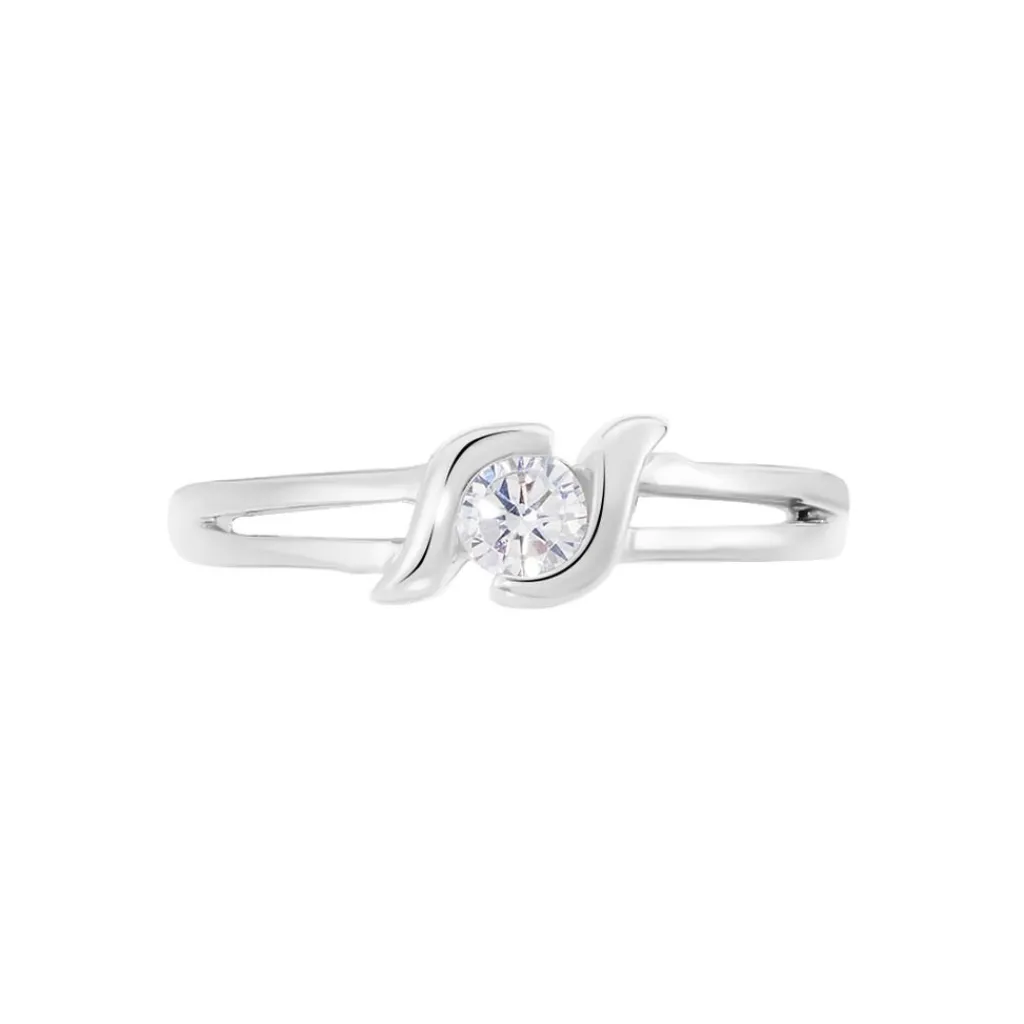 Bague Argent Blanc 925/1000 Double Corps De Bague Ajoure Oxyde De Zirconium Rond Serti Vrille