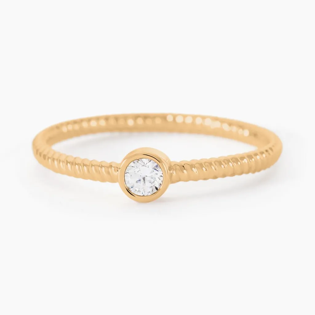 Bague Solitaire Plaqué Or Jaune Oxyde De Zirconium Serti Clos Effet Torsadé