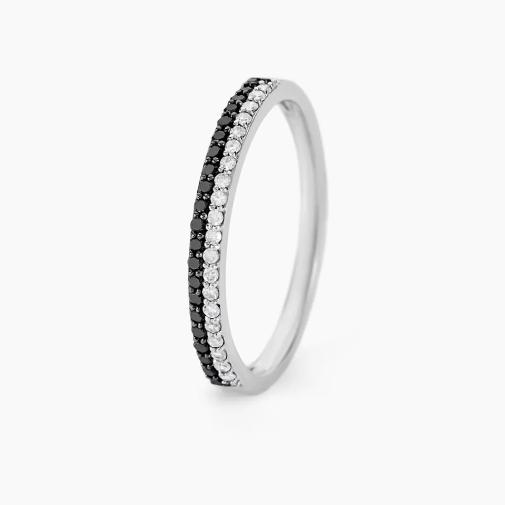 Bague Or Blanc 375/1000 Diamants Blancs Et Diamants Noirs