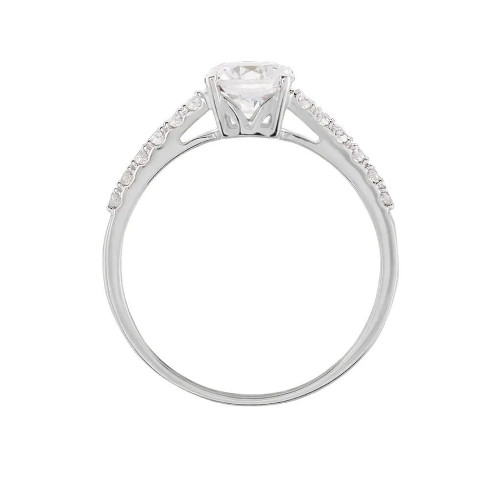Bague Or Blanc 375/1000 Oxyde De Zirconium Central Accompagne D’oxydes De Zirconium