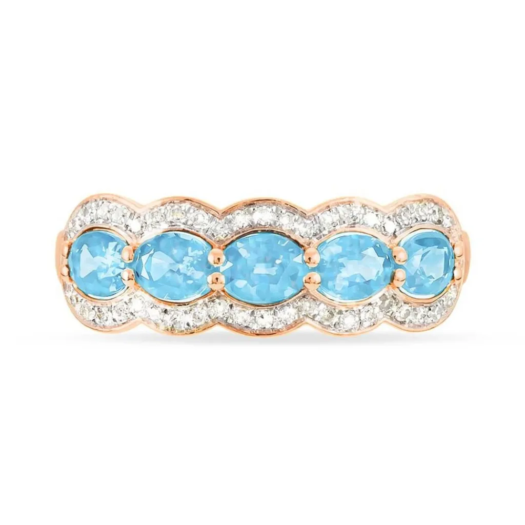 Bague Or Rose 375/1000 Topazes Bleues Claires Et Diamants