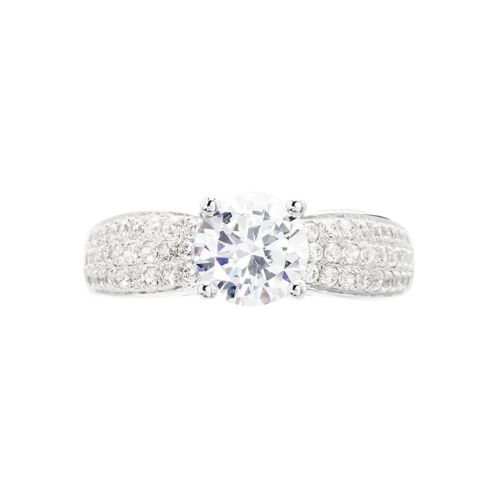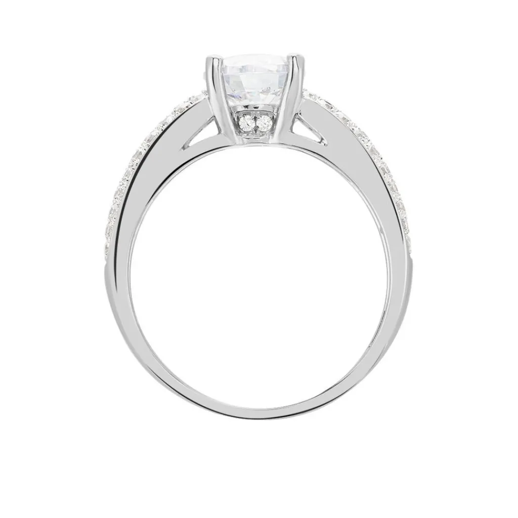 Bague Argent Blanc 925/1000 Oxyde De Zirconium Central Forme Ronde Pavage Oxyde De Zirconium