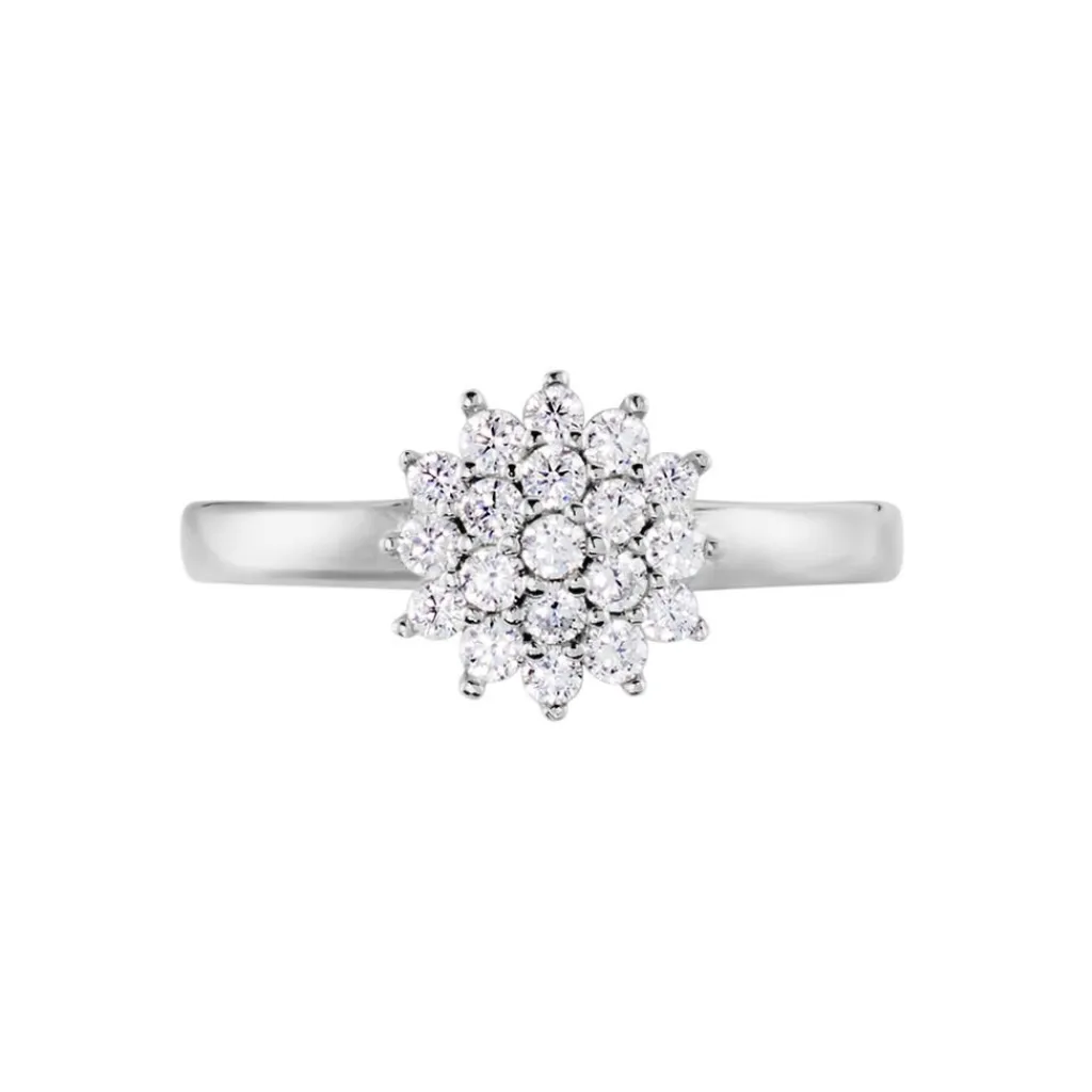 Bague Argent Blanc 925/1000 Forme Chou Oxydes De Zirconium Serti Griffes