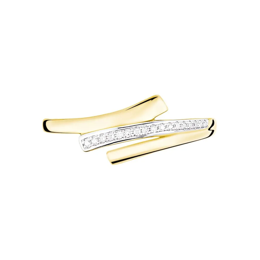Bague Or Jaune 375/1000 Forme Couteau Pavage Diamants
