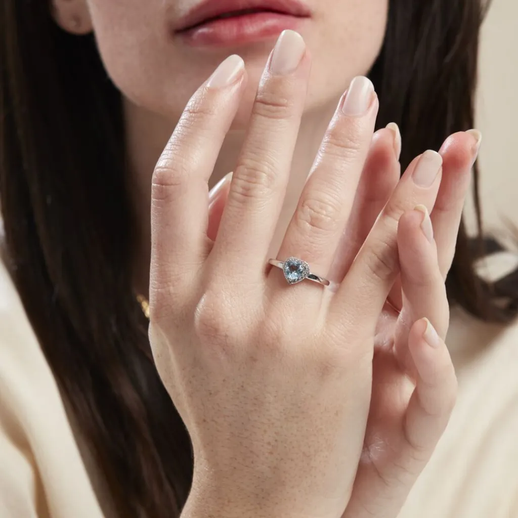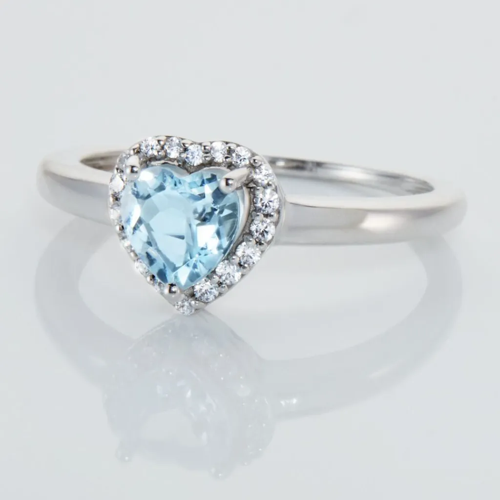 Bague Or Blanc 375/1000 C艙ur Topaze Sky Blue 1ct Serti 3 Griffes