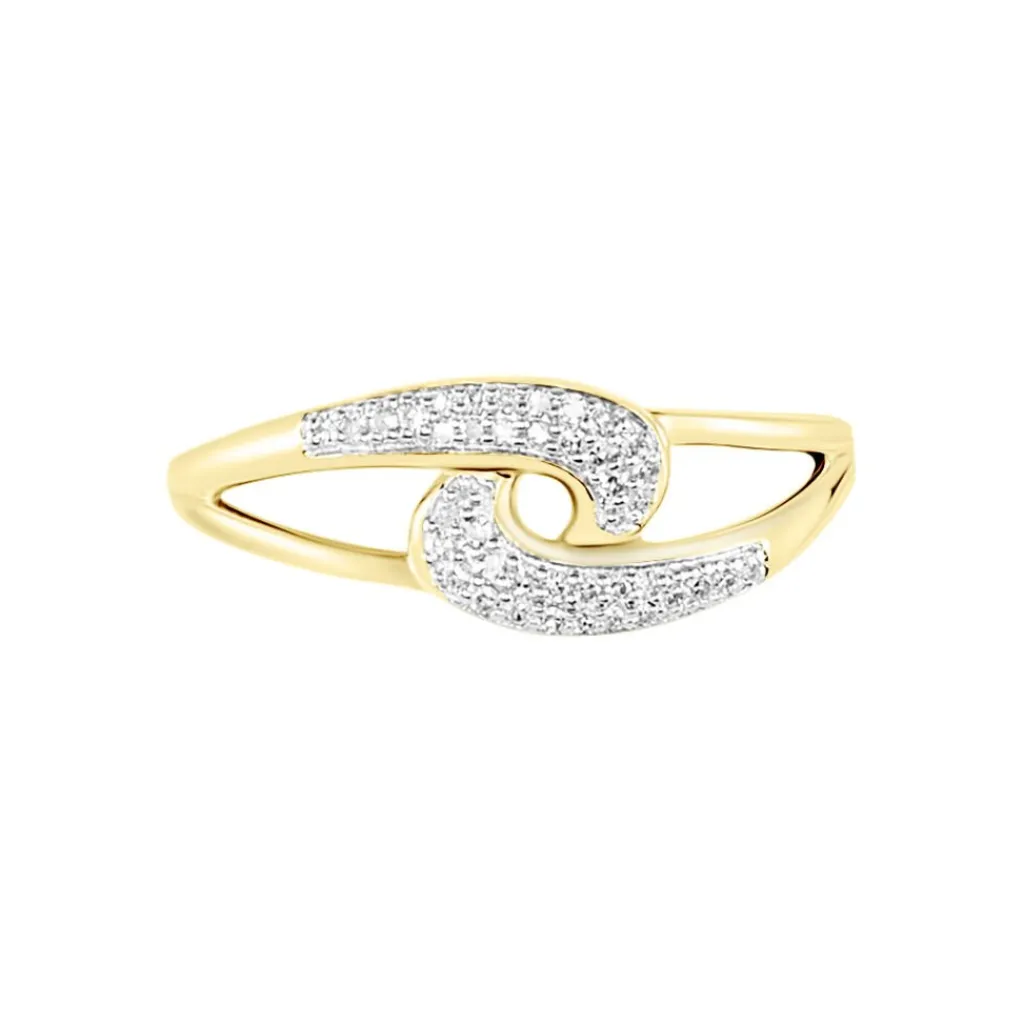 Bague Or Jaune 375/1000 Forme Entrelacee Pavage Diamants