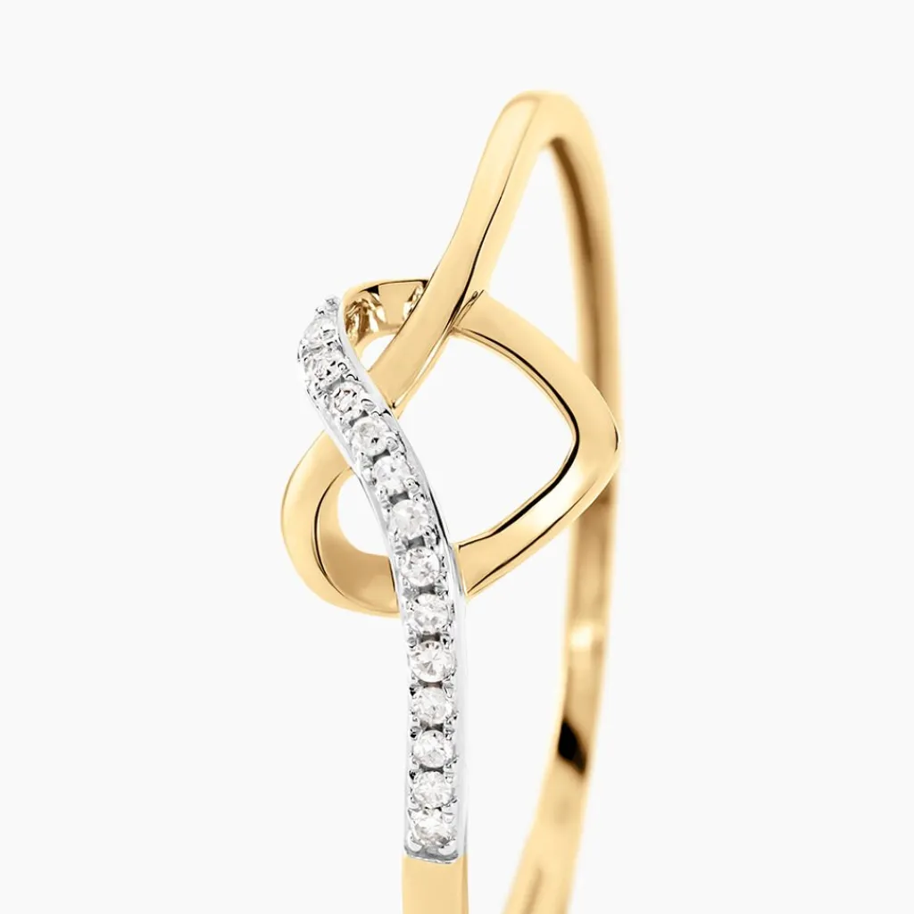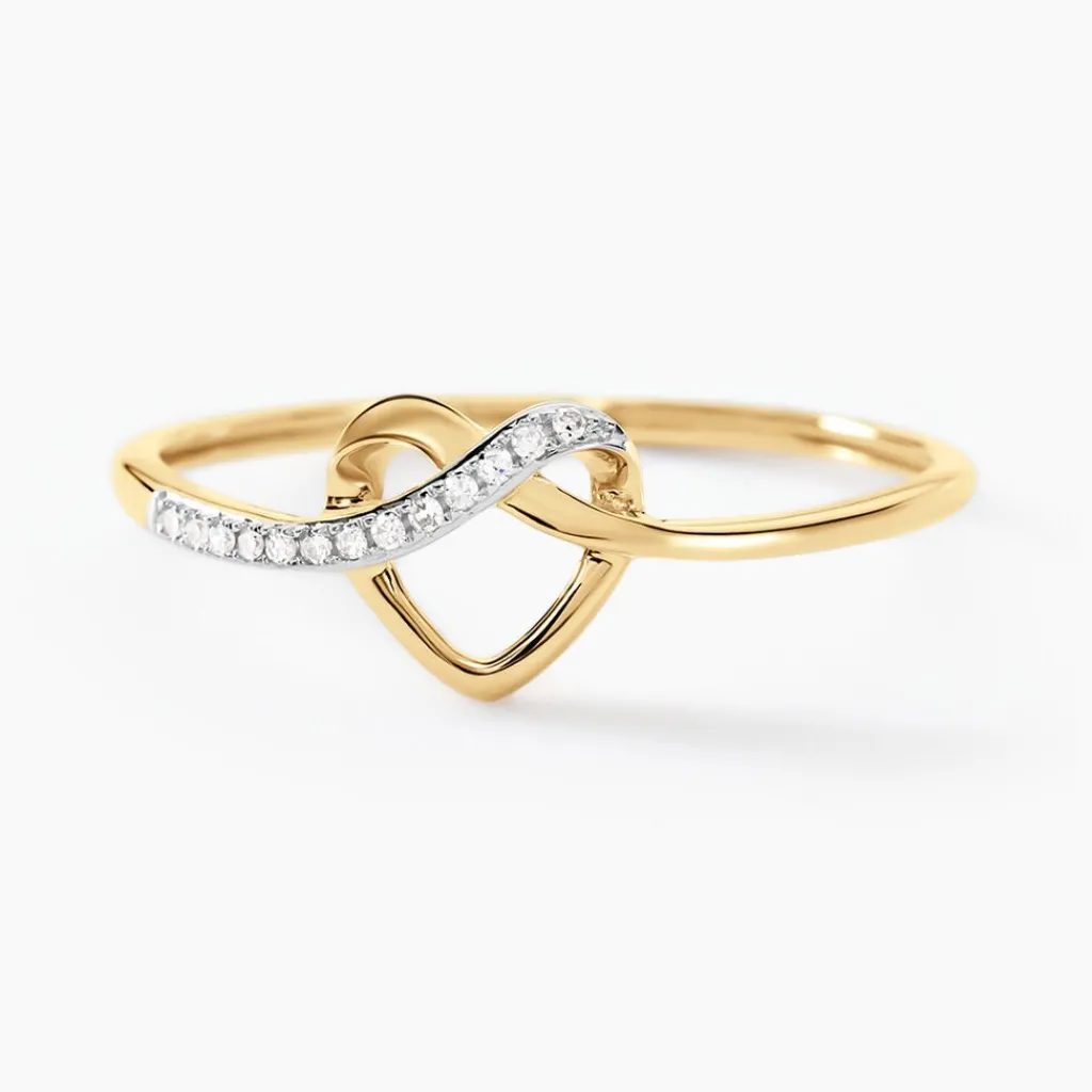 Bague Or Jaune 375/1000 Forme Coeur Pavage Diamants
