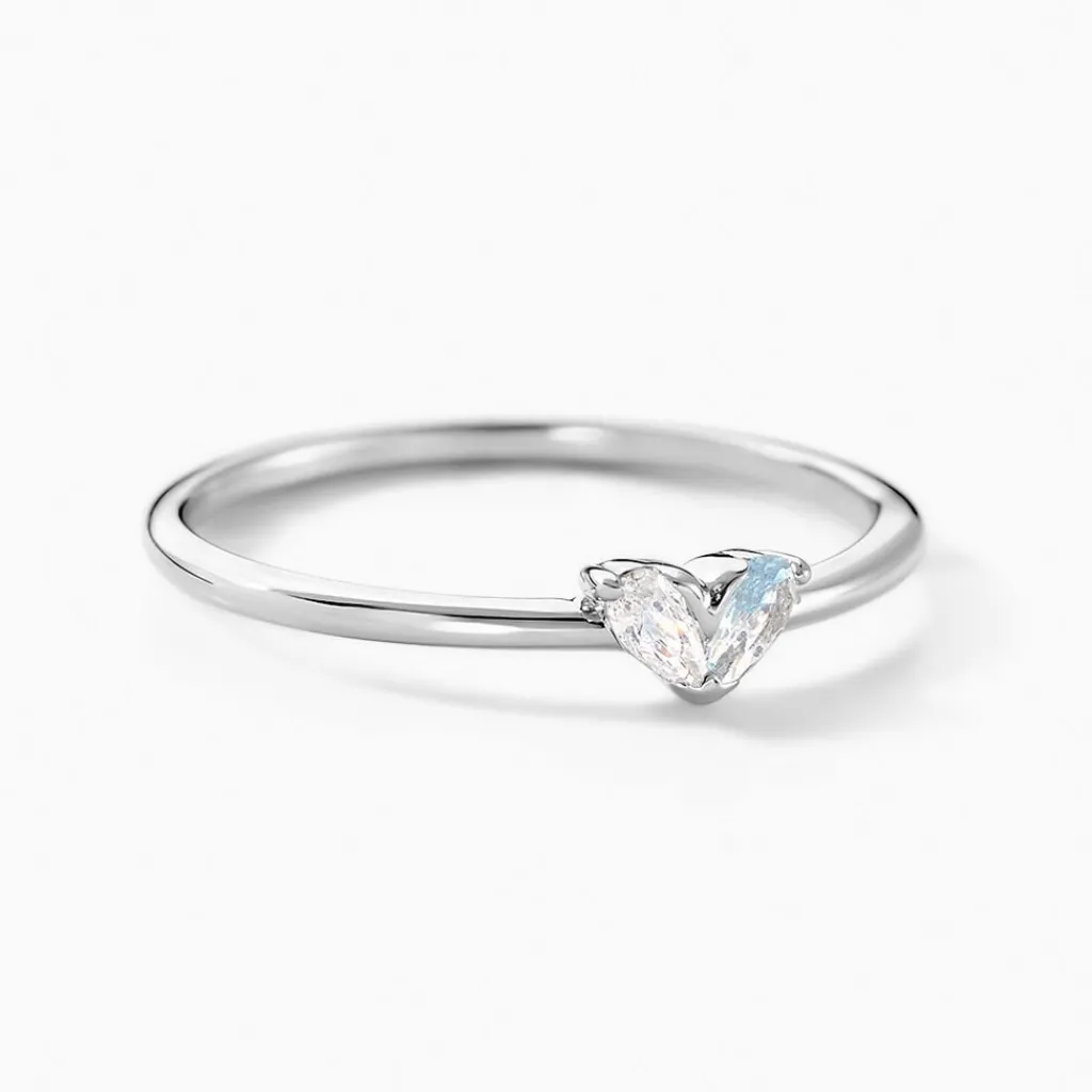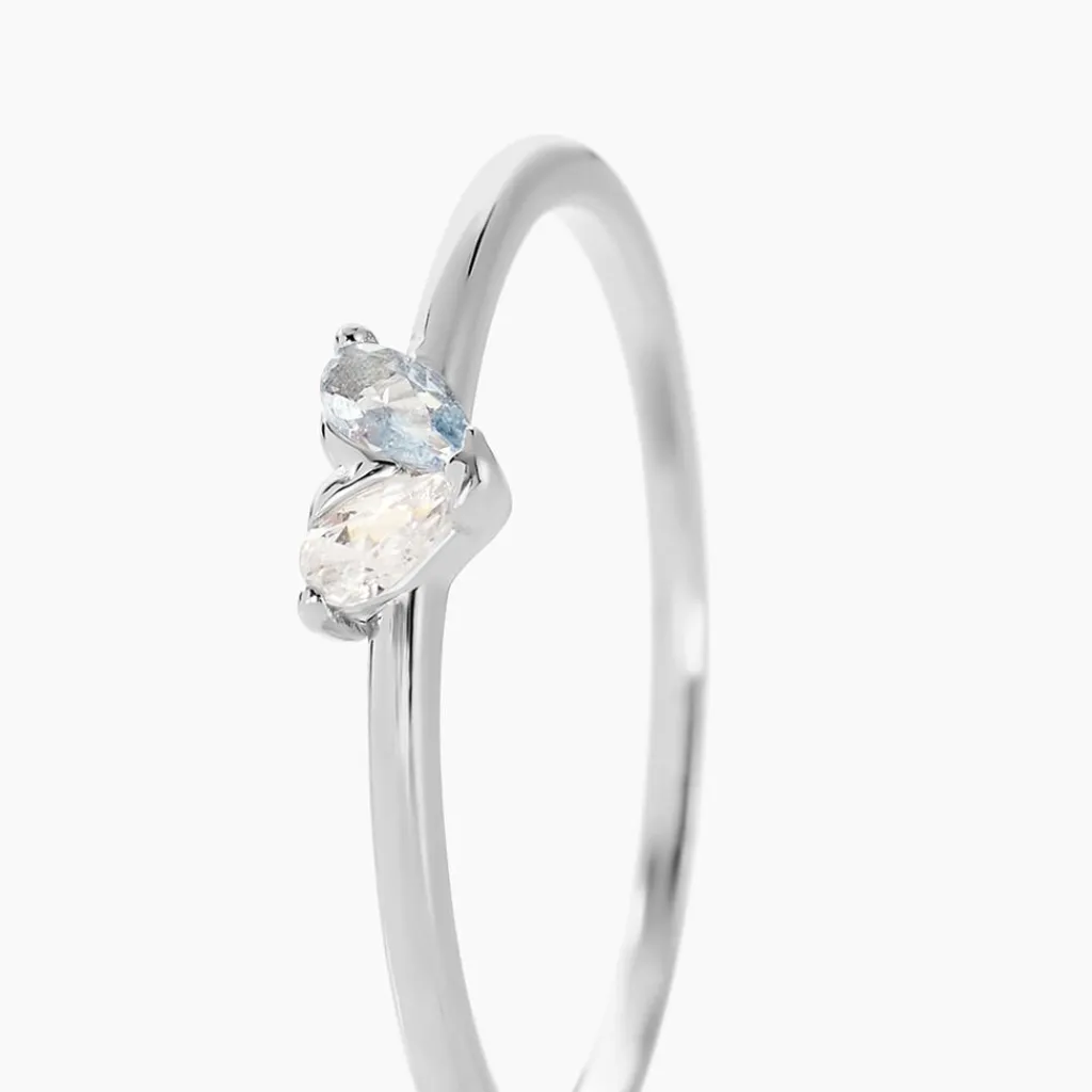 Bague Argent Blanc 925/1000 C艙ur Oxydes De Zirconium Bleu Azur Et Blanc