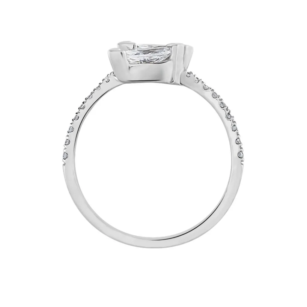 Bague Argent Blanc 925/1000 Toi Et Moi Accompagne Oxydes De Zirconium Sertis Griffes