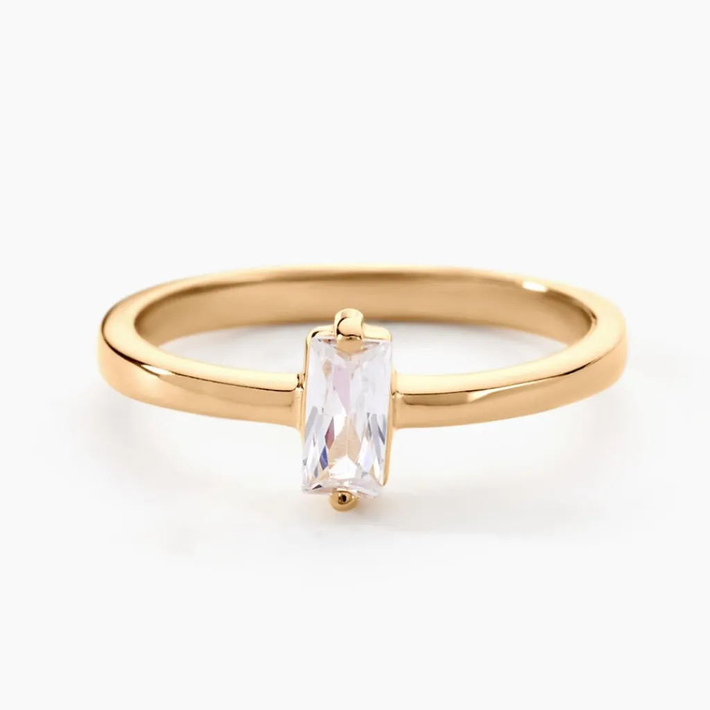 Solitaire Plaqué Or Jaune Oxyde De Zirconium Taille Baguette