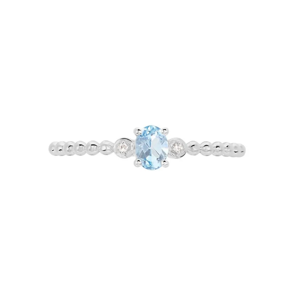 Bague Or Blanc 375/1000 Topaze Bleue Et Oxydes De Zirconium