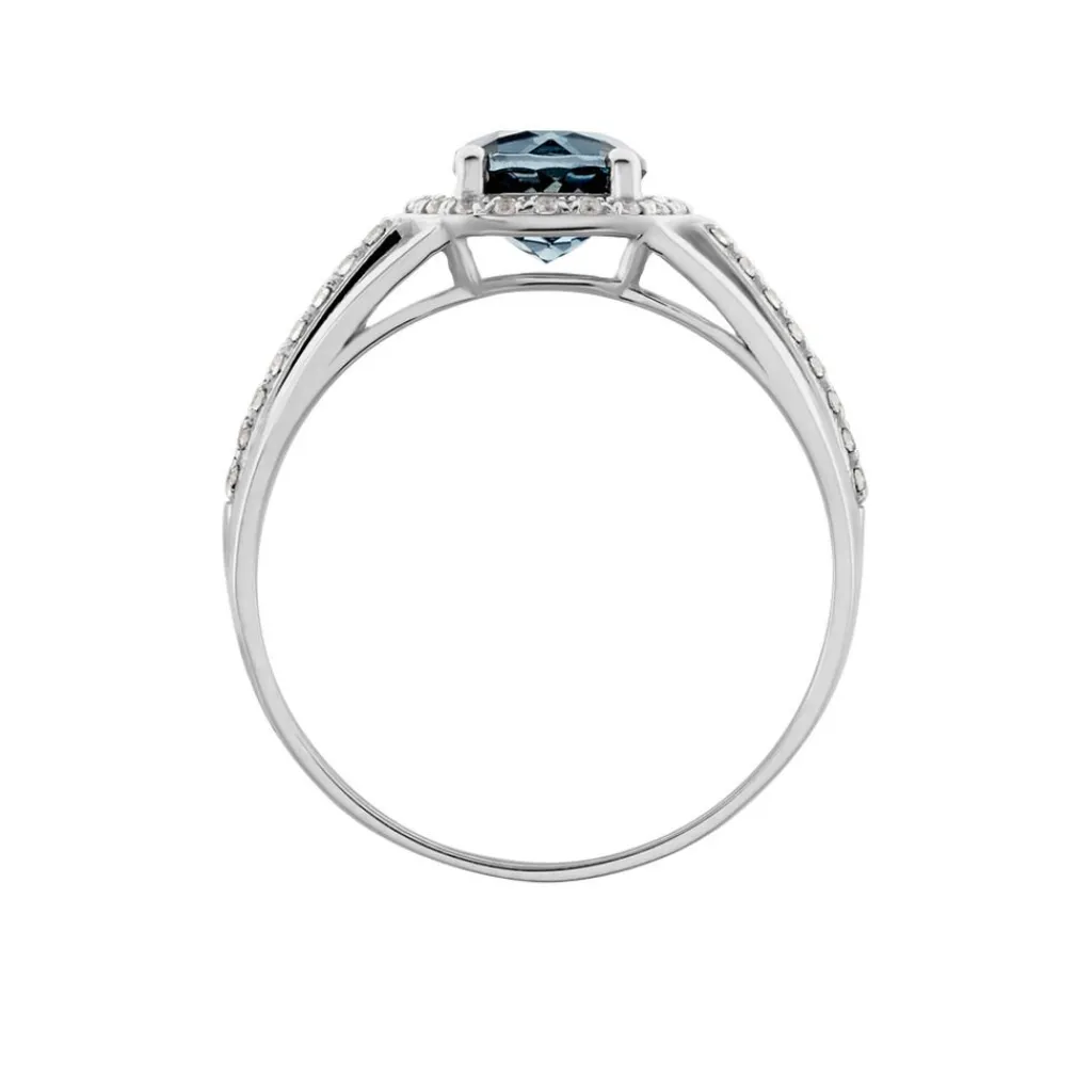 Bague Or Blanc 375/1000 Topaze London Blue 1.04 Cts Serti Griffes Entourage Et Accompagnee D’oxydes De Zirconium