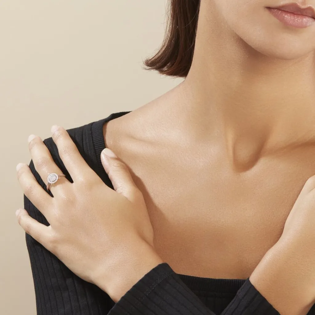 Bague Or Blanc 750/1000 Entourage Diamants Synthétiques