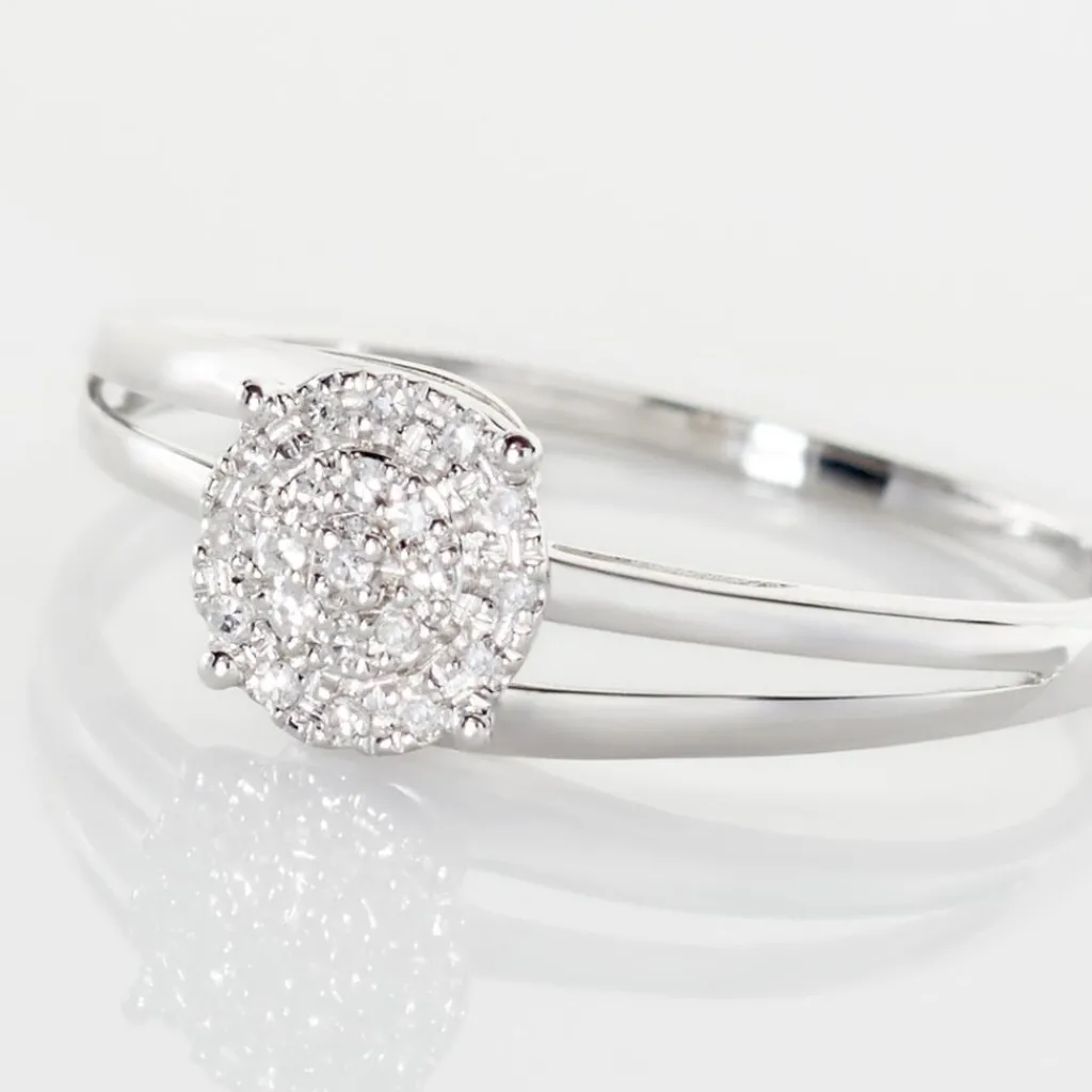 Bague Or Blanc 375/1000 Multipierre Corps Vrille Pavage Diamants