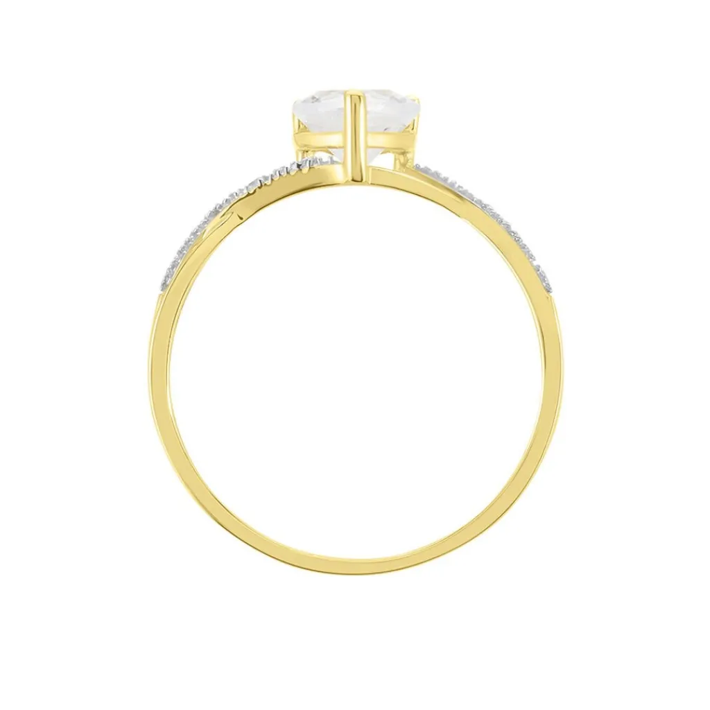 Bague Or Jaune 375/1000 Coeur Oxyde De Zirconium Serti Griffes 1.6cts