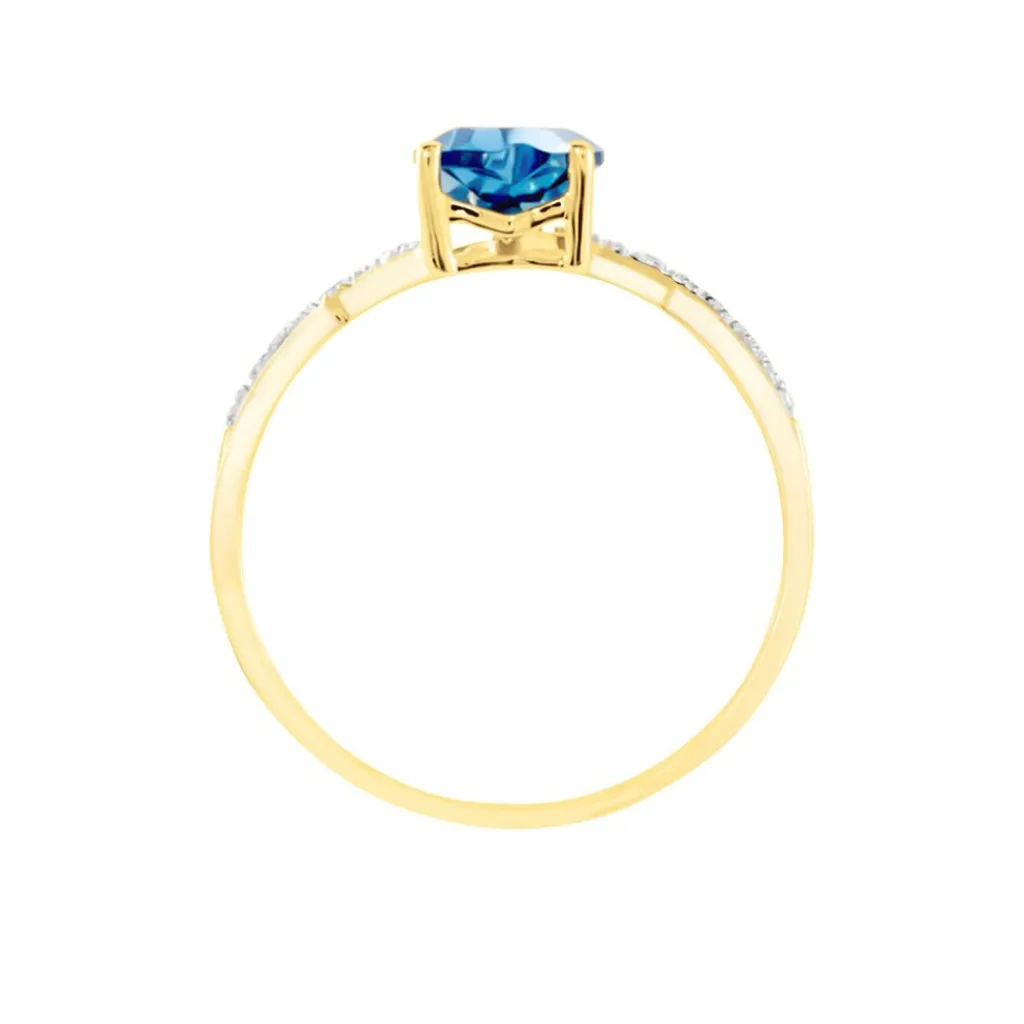 Bague Or Jaune 375/1000 Topaze London Blue Coeur 1.1 Cts Serti Griffes Accompagnée Oxydes De Zirconium