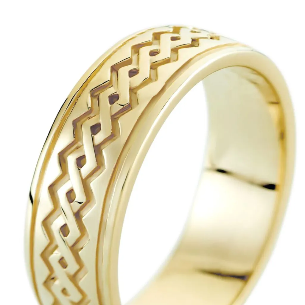 Bague Plaqué Or Jaune Anneau Gravure Motifs Ethniques