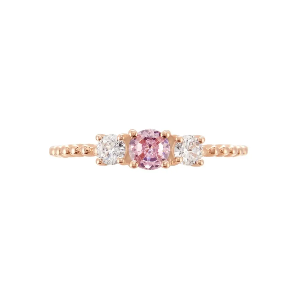 Bague Argent Rose 925/1000 Trilogie Serti 4 Griffes Oxyde Rose Accompagne Oxydes Blanc Corps De Bague Perle