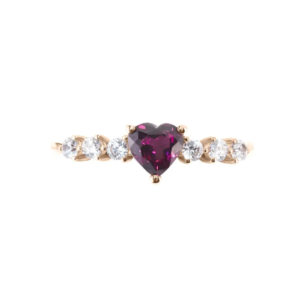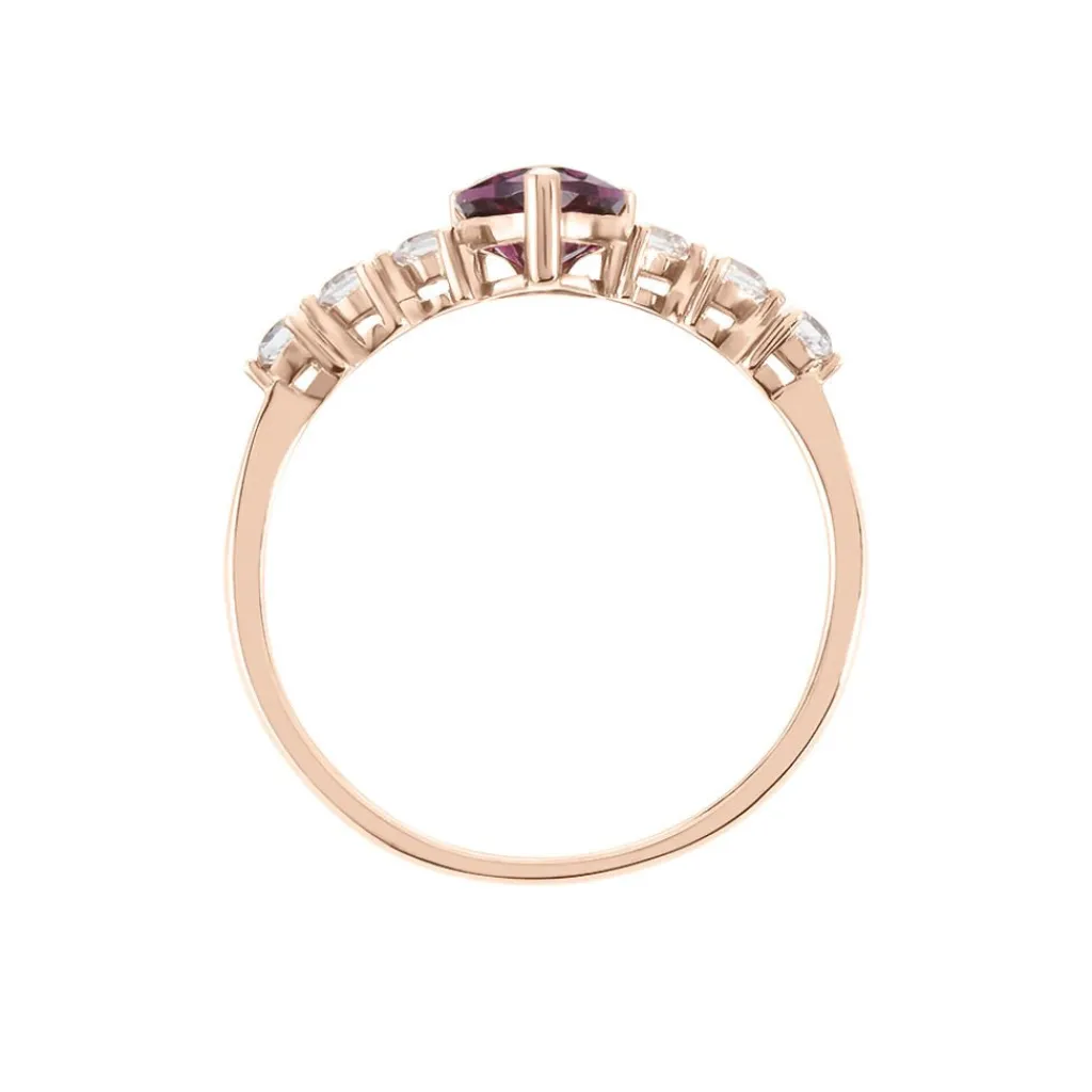 Bague Solitaire Accompagné Or Rose 375/1000 C艙ur Rhodolite Rouge 0.6cts Serti Griffes