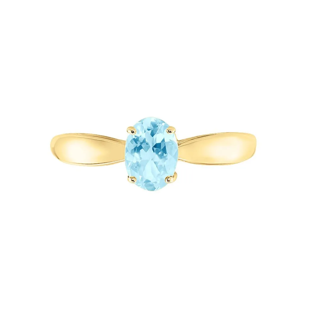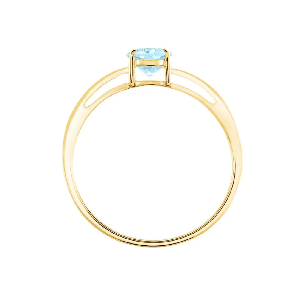 Bague Solitaire Or Jaune 375/1000 Topaze Sky Blue 0.7 Cts Serti 4 Griffes