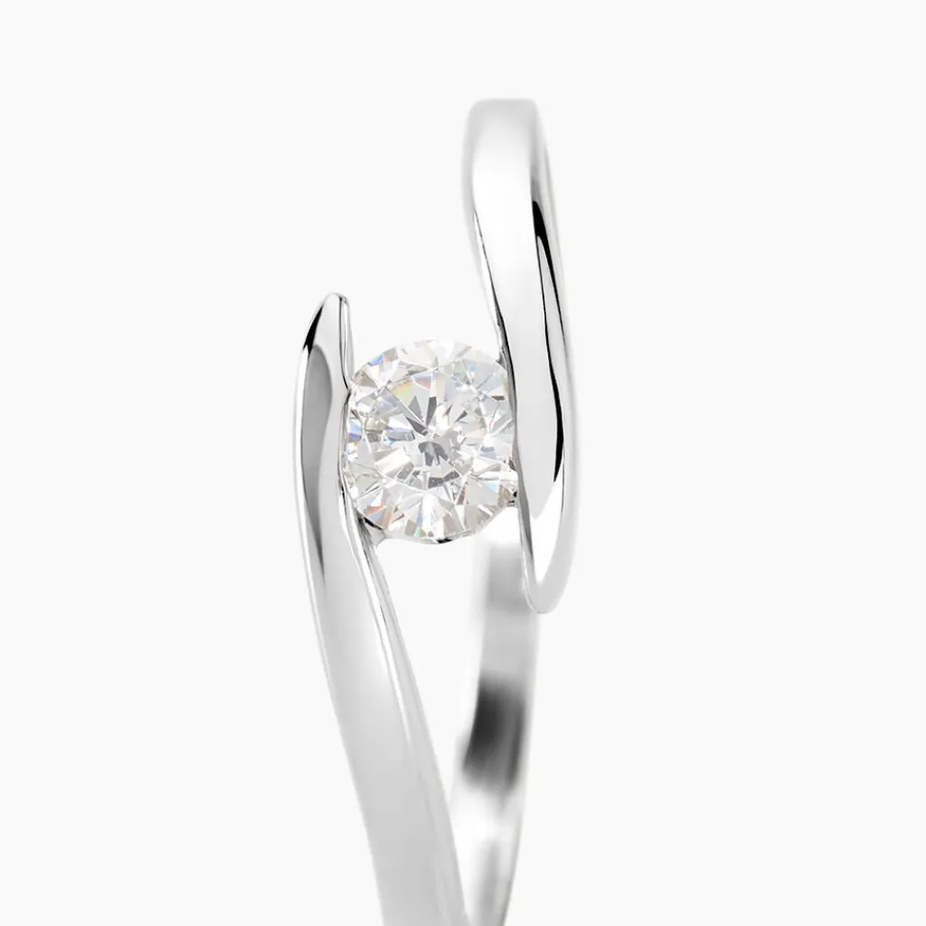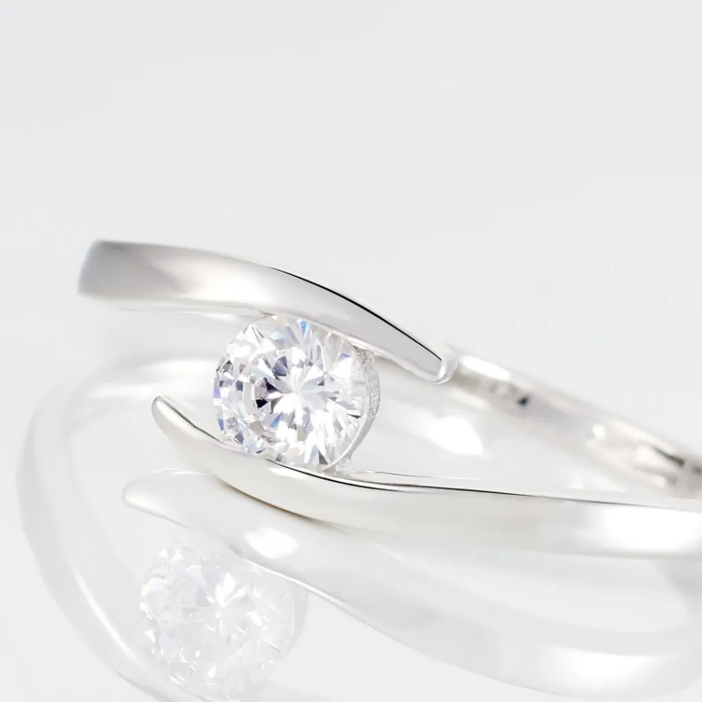 Solitaire Or Blanc 375/1000 Forme Couteau Oxyde De Zirconium Central