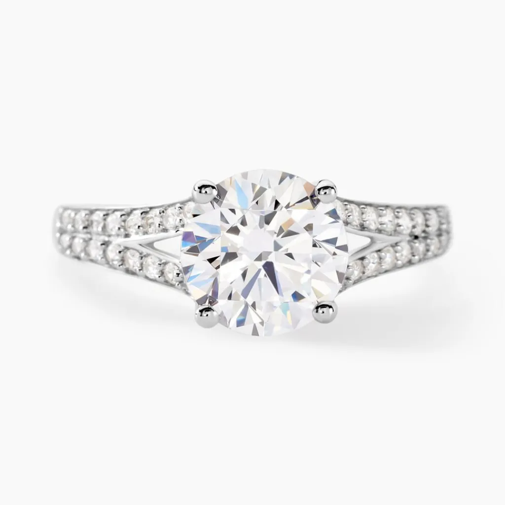 Solitaire Or Blanc 375/1000 Oxyde Central Et Corps De Bague Double Accompagne Oxydes