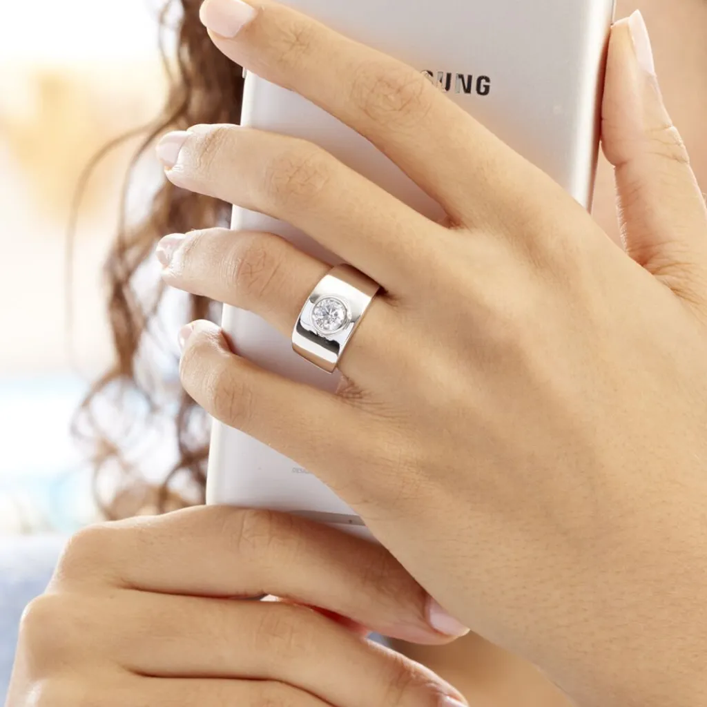 Bague Pleine Argent 925/1000 Solitaire Sertis Clos Oxyde De Zirconium