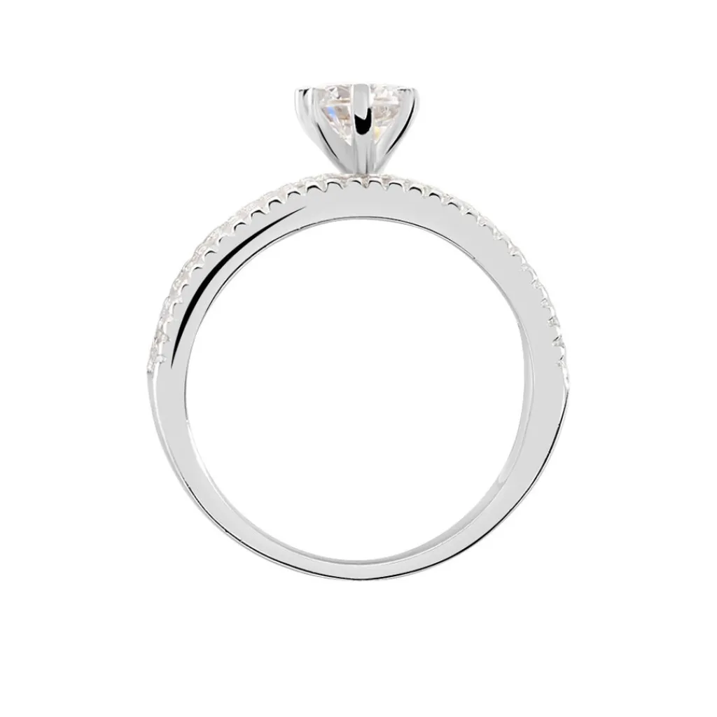 Bague Solitaire Argent Blanc 925/1000 6 Griffes Corps De Bague 3 Rangs Pavage Oxydes De Zirconium