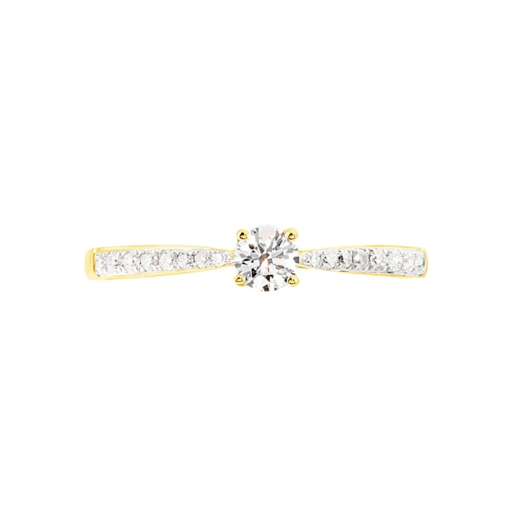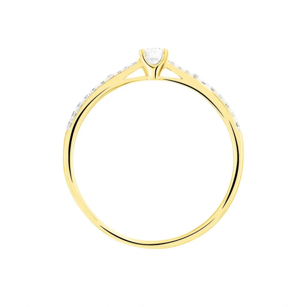 Solitaire Or Jaune 375/1000 Diamant Central 0.20cts Serti Griffes Accompagnes Diamants