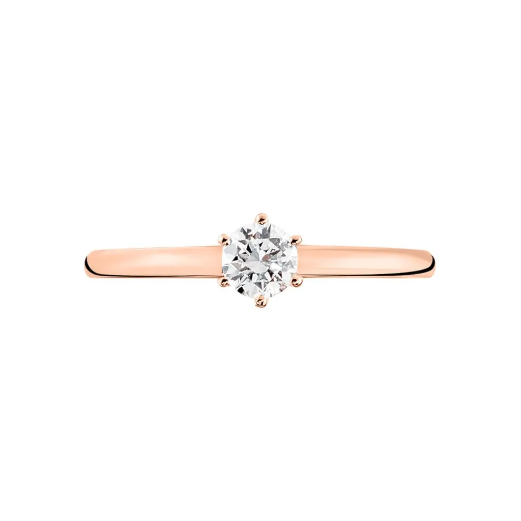 Solitaire Or Rose 375/1000 Diamant Central 0.3cts Serti 6 Griffes
