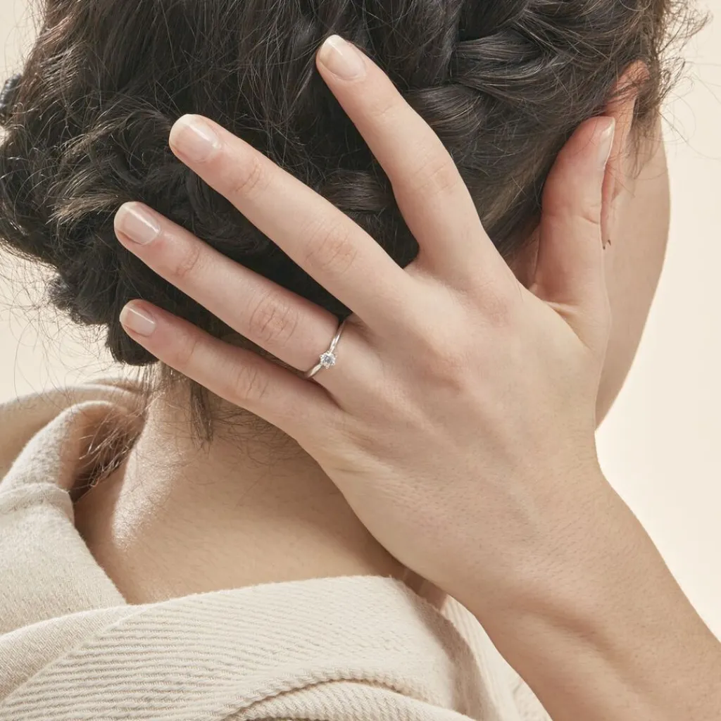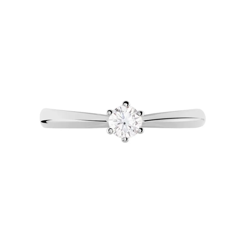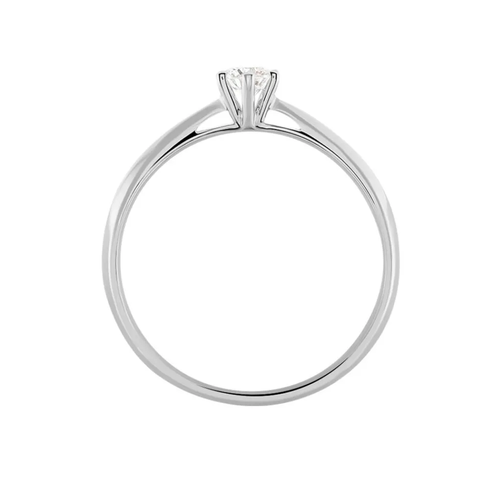 Solitaire Or Blanc 375/1000 Diamant 0.20cts Serti 6 Griffes Corps De Pince