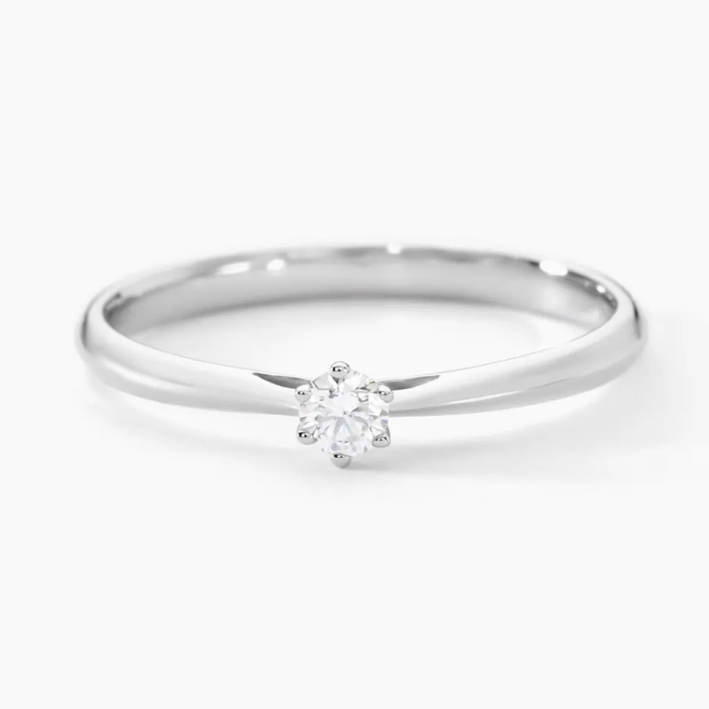 Solitaire Or Blanc 375/1000 Diamant 0.10ct Serti 6 Griffes Corps De Pince