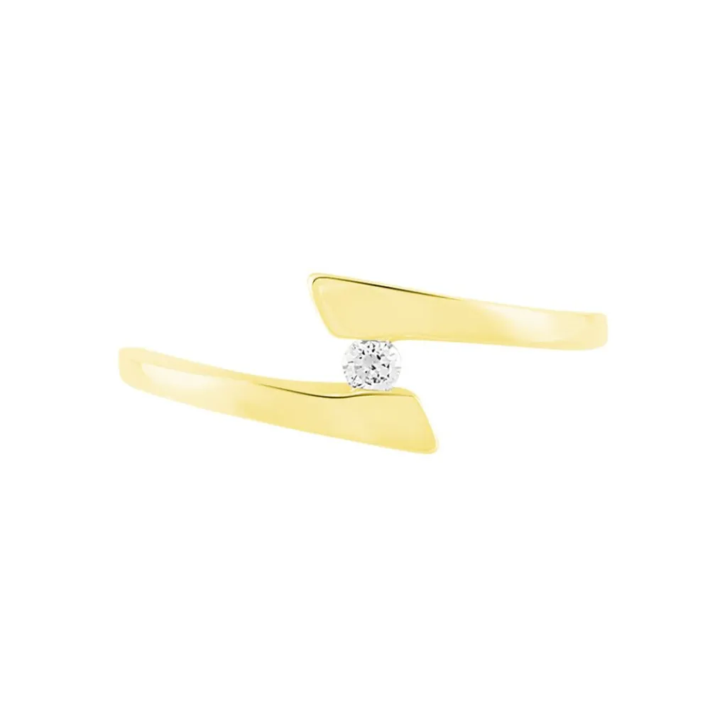 Solitaire Or Jaune 375/1000 Style Couteau Diamant 0.05cts Central