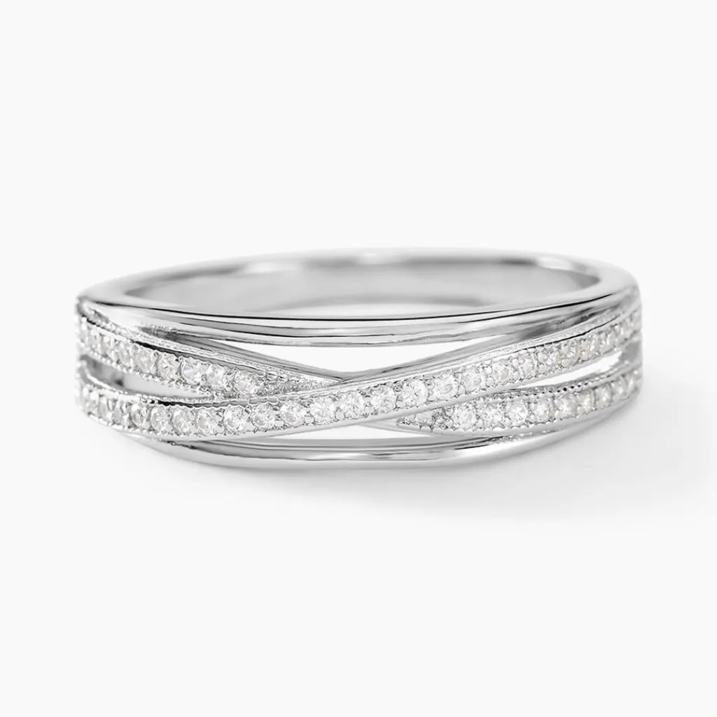 Bague Argent Blanc 925/1000 Oxydes De Zirconium Croise