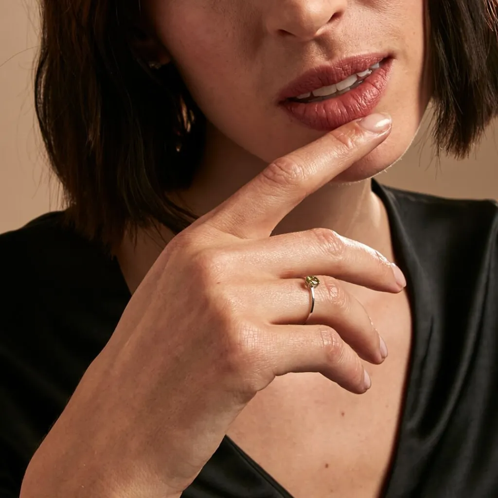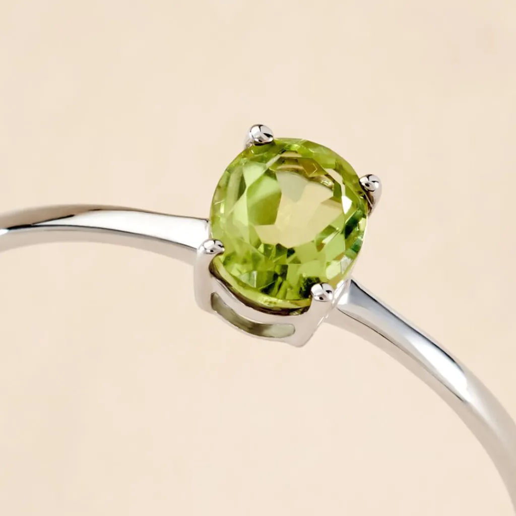 Bague Solitaire Or Blanc 375/1000 Ovale Péridot Vert 0.45cts Serti 4 Griffes