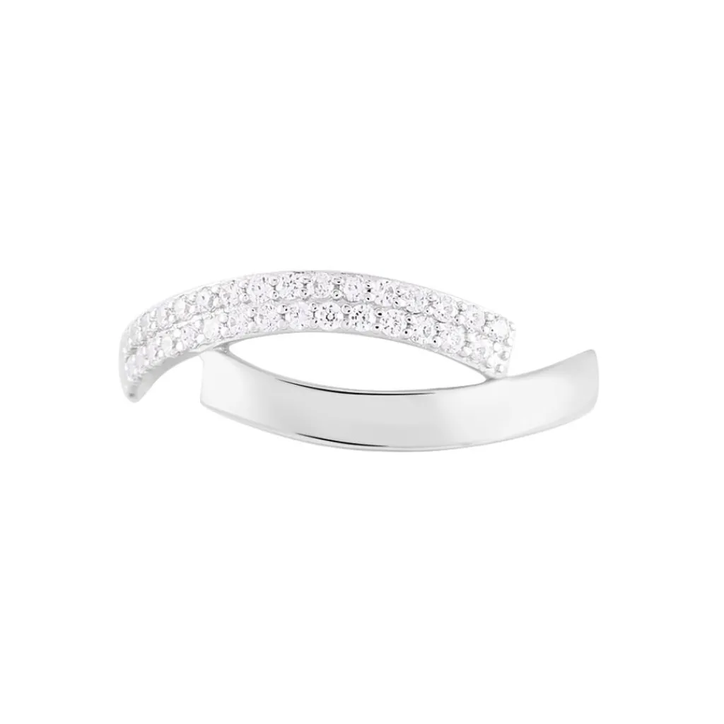 Bague Or Blanc 375/1000 Pavage Oxydes De Zirconium Ruban