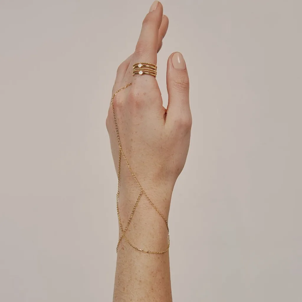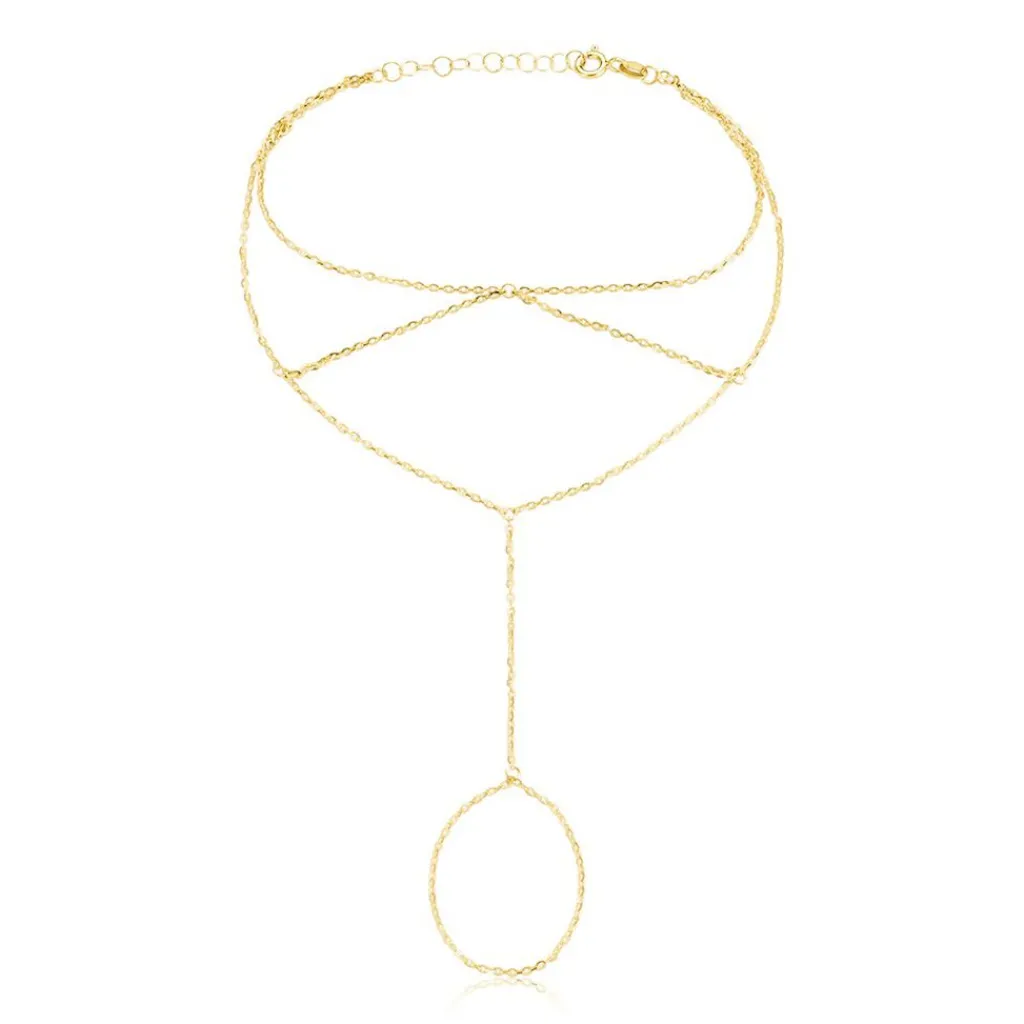 Bijou De Main Argent Jaune 925/1000 Mailles Jaseron 17+3cm