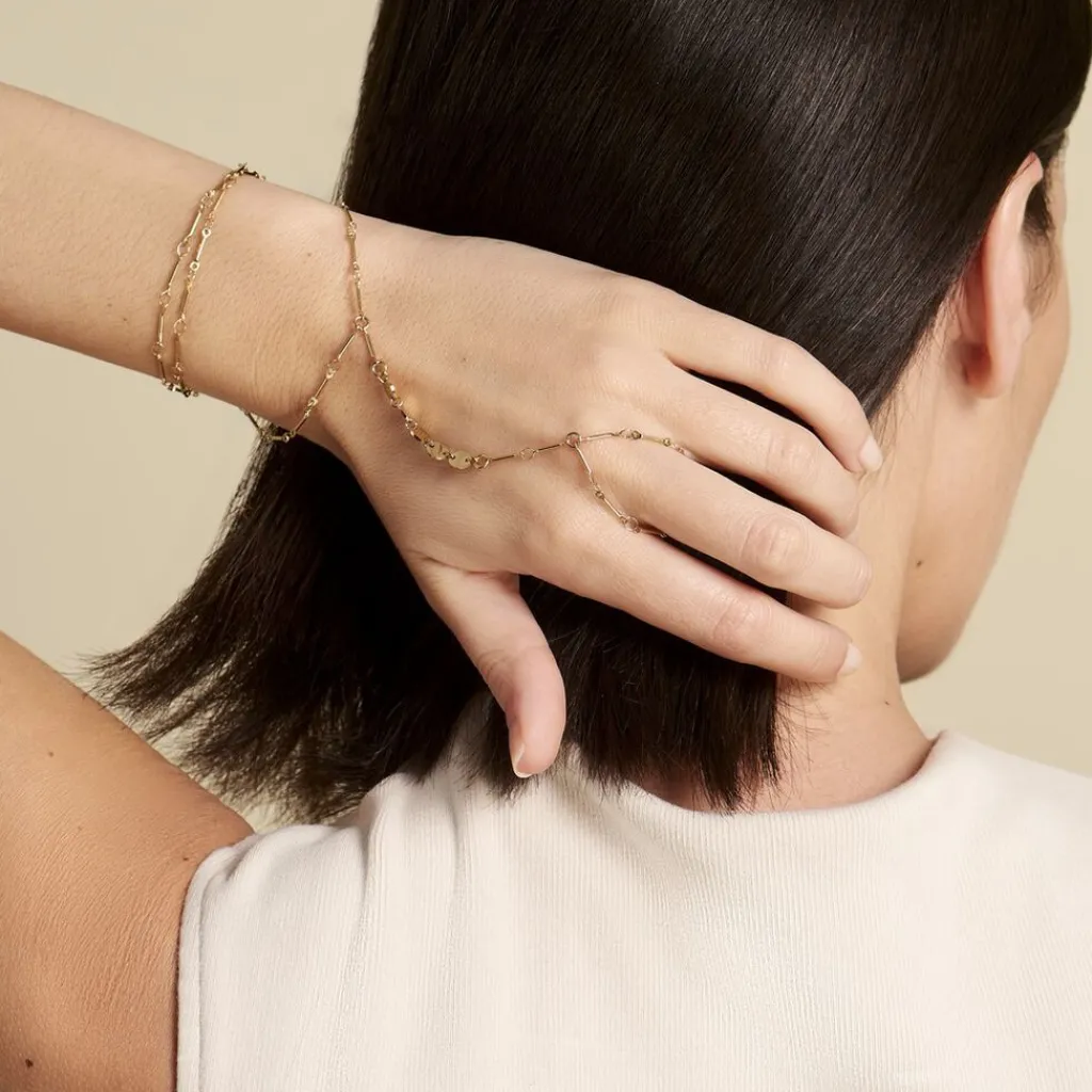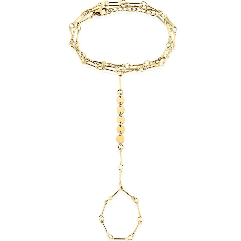 Bijou De Main Triple Tour Acier Inoxydable Jaune Pastilles Ovales Maille Fantaisie 53cm