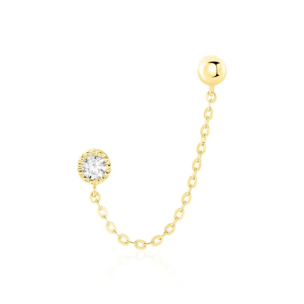Bijou D’oreille Unitaire Pendante Or Jaune 375/1000 Oxydes De Zirconium Sertis Clos Effet Perle Maille Forcat Ronde