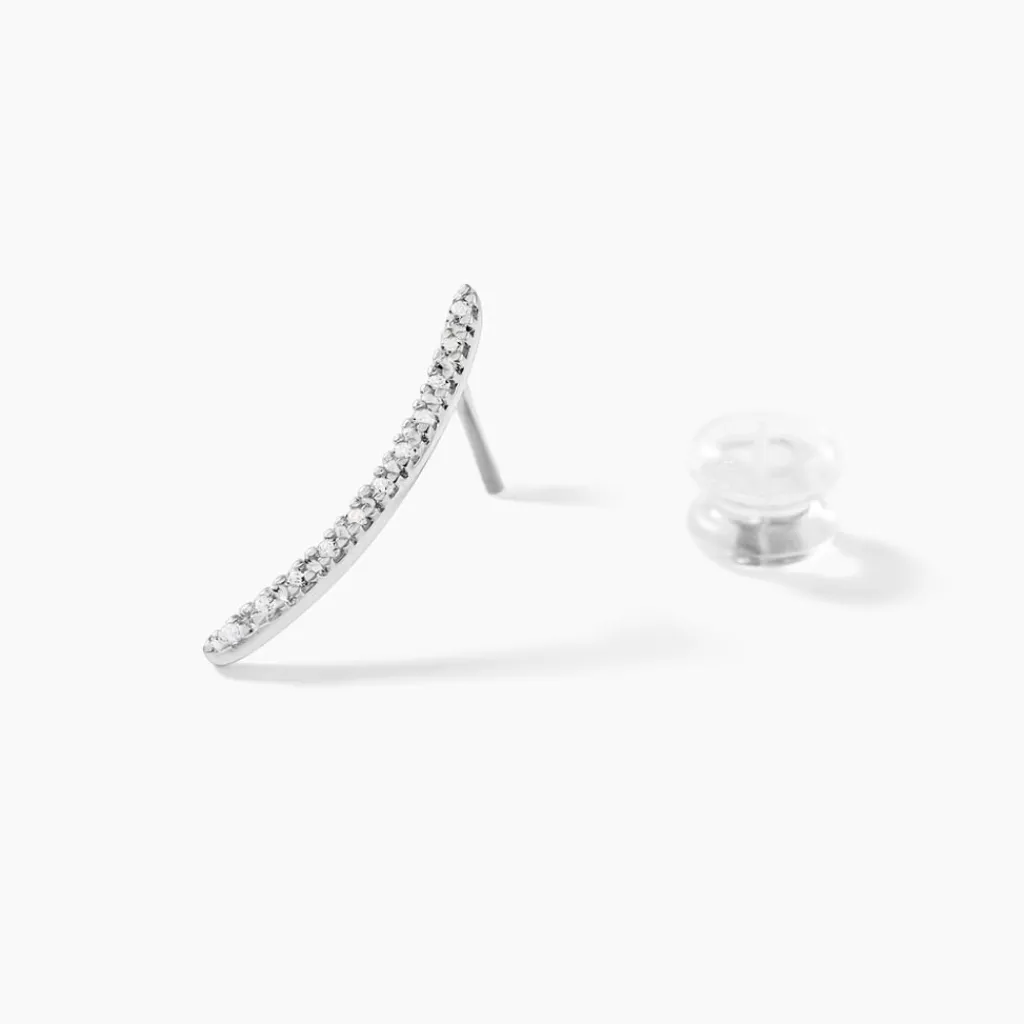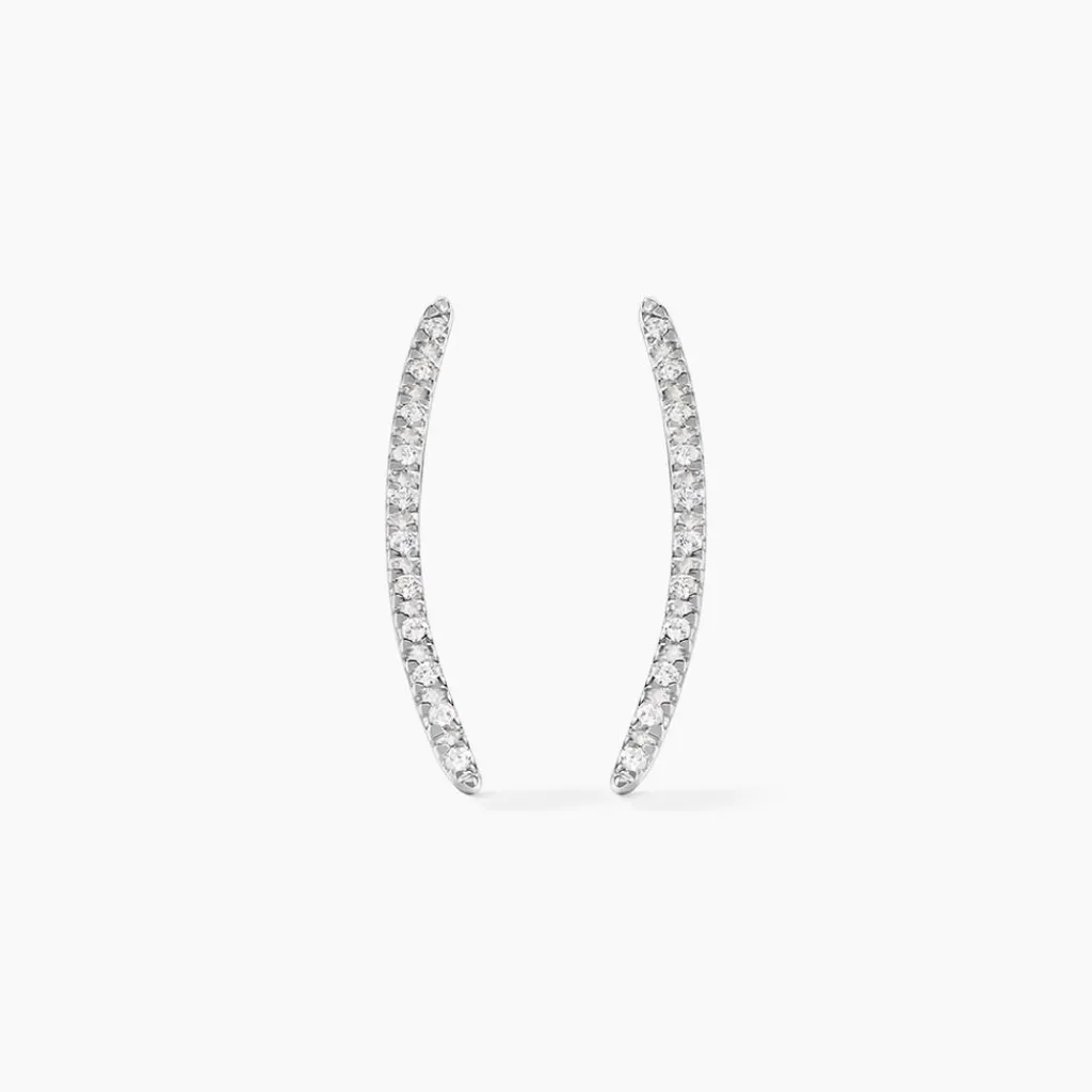 Bijoux D’oreilles Grimpantes Or Blanc 375/1000 Forme Barrettes Pavage Oxydes De Zirconium Blancs