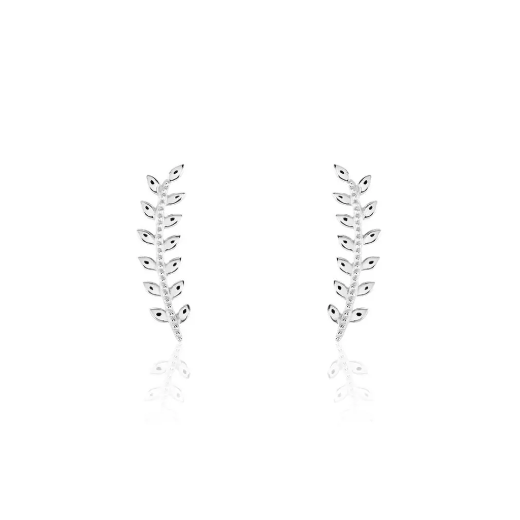 Boucles D’oreilles Grimpantes Argent Blanc 925/1000 Feuilles