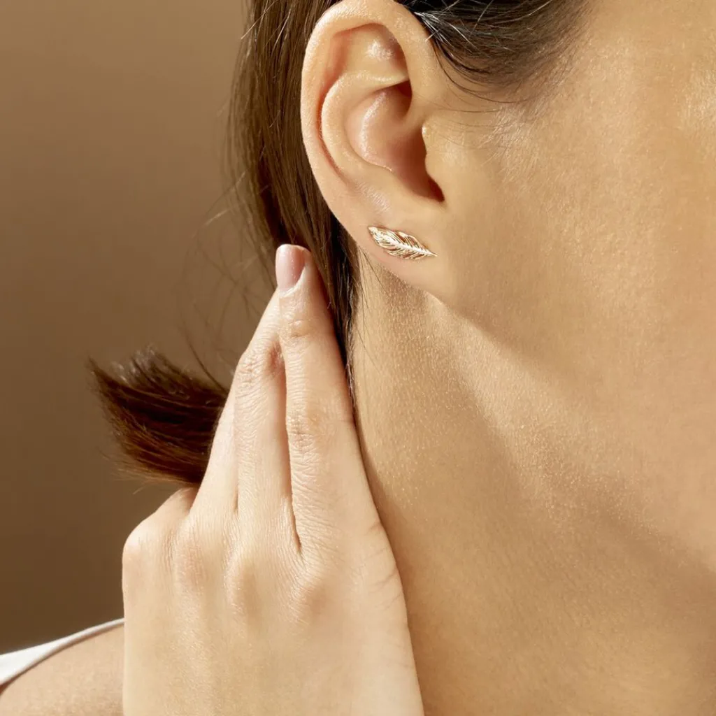 Boucles D’oreilles Grimpantes Plaqué Or Jaune Plumes